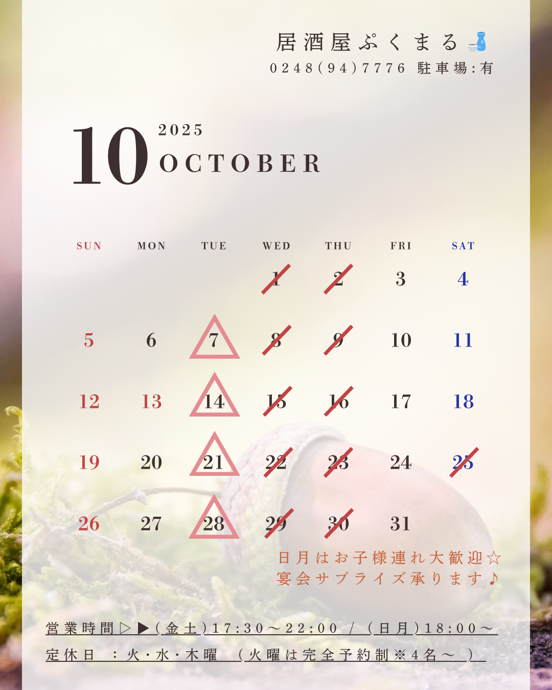 居酒屋ぷくまる 17:30~22:00( ※日月は18:00~)